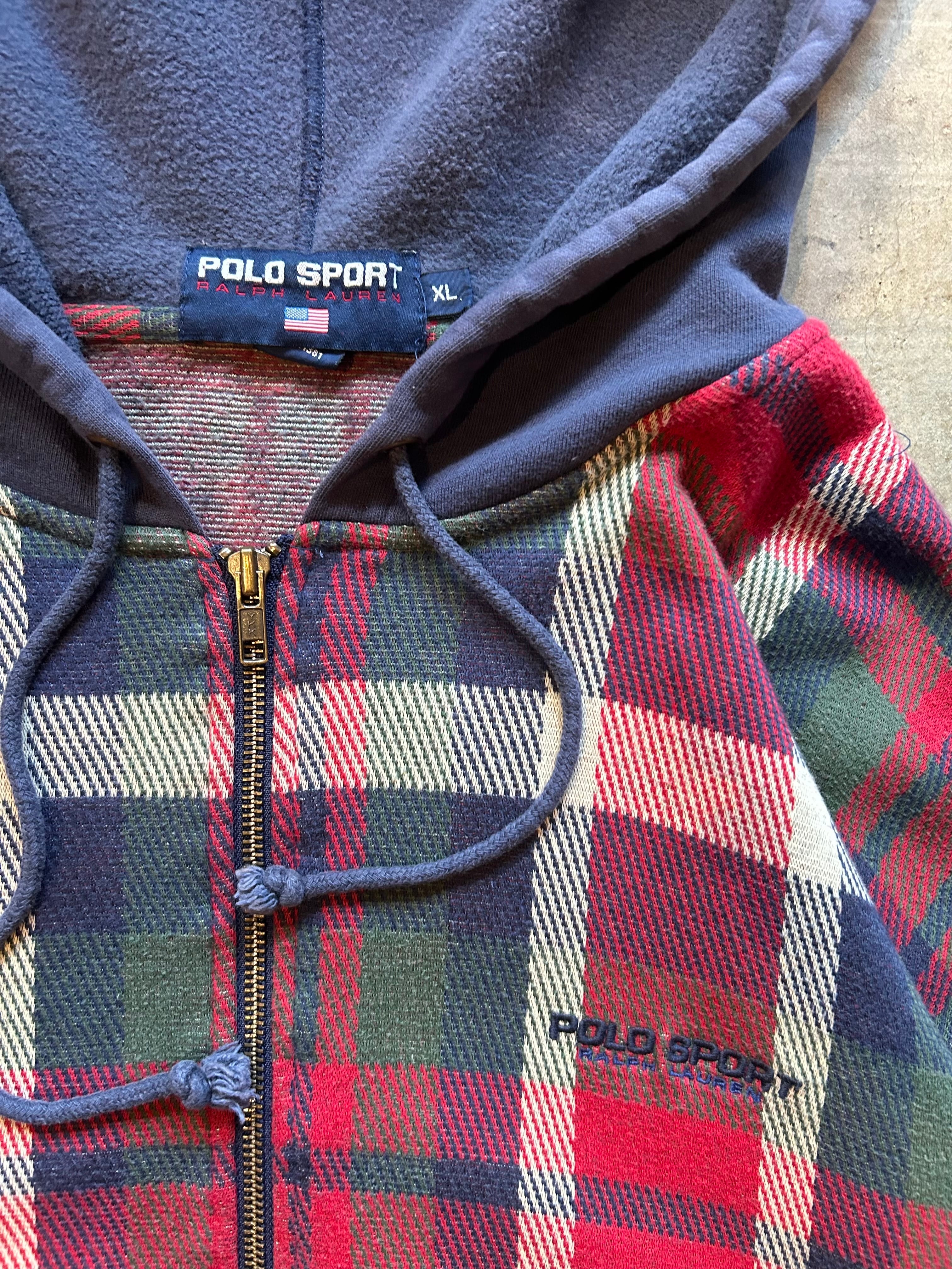 1990s POLO SPORT "checked full-zip hoodie"