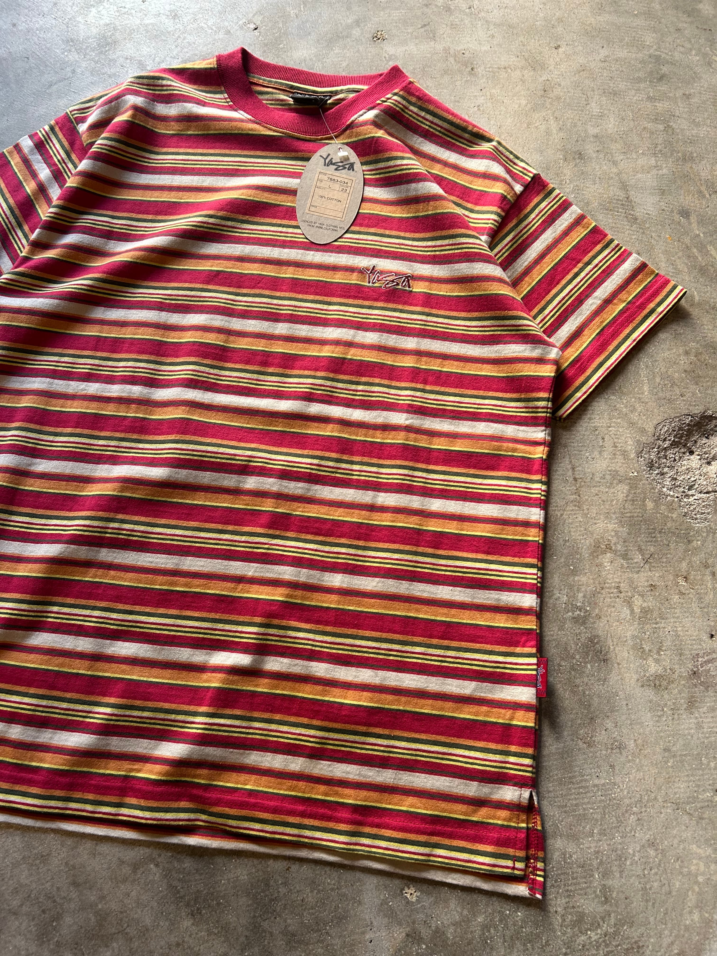 2000s YAGA "multi stripe pattern s/s tee"